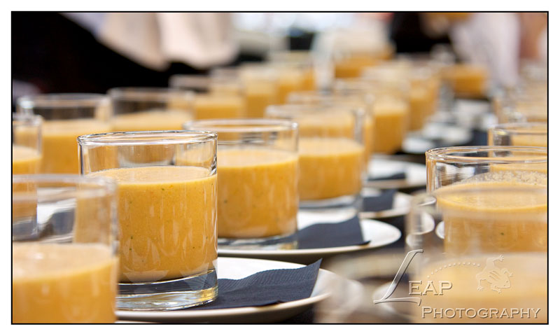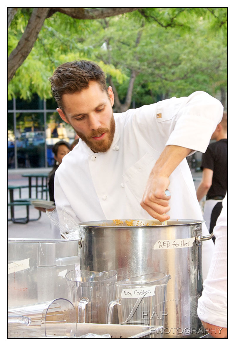 Chef Alex Cardoza of Red Feather preparing the Heirloom Tomato and Cucumber Gazpacho course